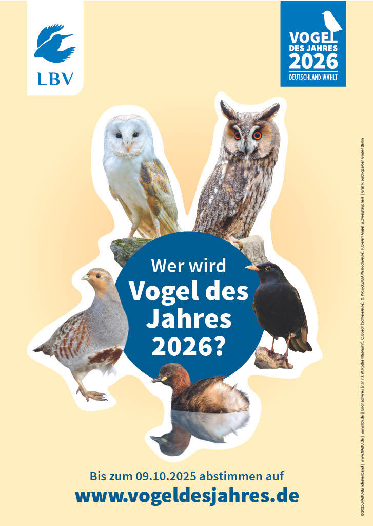 Bis zum 09.10.2025 11:00 Uhr können Sie jetzt ihre Stimme für den Vogel des Jahres 2026 abgeben.
